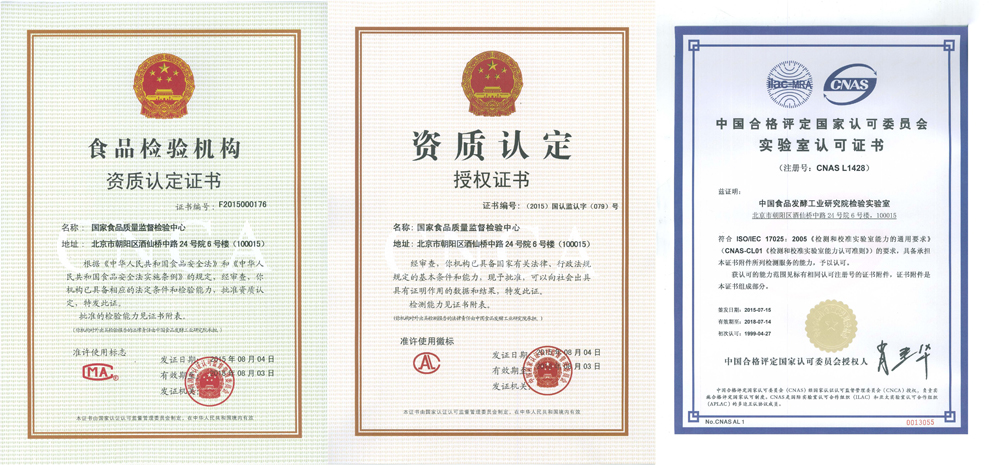國家食品質量監督檢驗中心(以下簡稱中心)依托在中國食品發酵工業研究院有限公司,成立于1989年,是由國家質量監督檢驗檢疫總局授權的從事食品檢驗的國家級質檢中心,擁有CMAF資質認定、 CAL授權 及CNAS認可證書。授權的食品及相關產品覆蓋酒類、飲料、糖果、罐頭、焙烤食品、 冷凍飲品、調味品、肉制品、水產加工品、食品添加劑及食品包裝材料共計460余種,檢驗參數覆蓋理化檢驗、營養成分及保健食品功效成分、農獸藥殘留、重金屬及化學污染物、生物毒素、食品添加劑、非法添加物、微生物學及分子生物學檢測等領域共計1860個,在國內同行業處于領先地位。
