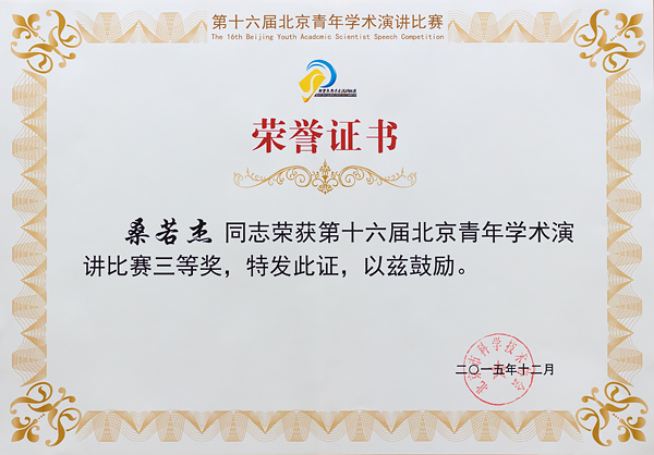 熱烈祝賀我院食品研發部桑若杰獲得第十六屆北京青年學術演講比賽三等獎