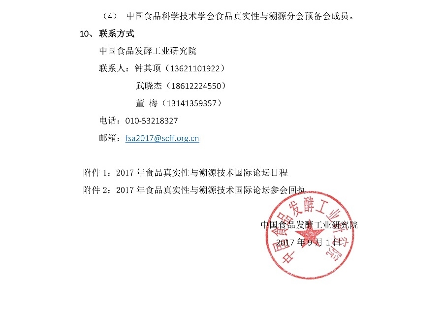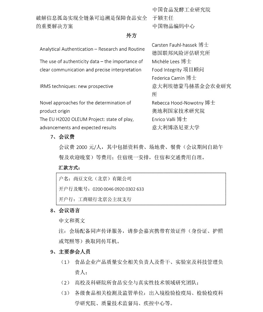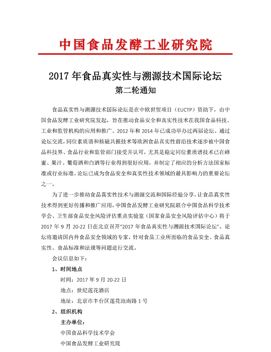 2017年食品真實性與溯源技術國際論壇第二輪通知
