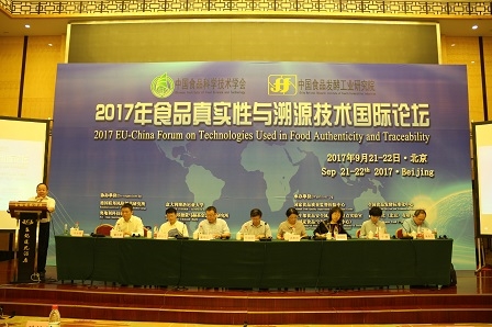 本屆論壇涉及議題包括:食品真實性技術、食品溯源技術、食品鏈脆弱性評估技術、食品摻假鑒別與管理技術、食品安全法規與標準。演講及主持嘉賓包括:中國工程院院士、中國食品科學技術學會副理事長、北京工商大學食品學院孫寶國教授,國家食品安全風險評估中心吳永寧技術總師,浙江清華長三角研究院任一平教授、信息技術研究所陳清華所長,中國檢驗檢疫科學研究院張九凱博士,北京食品科學研究院中國肉類食品綜合研究中心周彤主任,天津科技大學杜欣軍教授,中國農業科學院農產品加工研究所哈益明教授、郭波莉博士,中國農業科學院農業質量標準與檢測技術研究所楊曙明教授,中國物品編碼中心應用推廣部食品安全追溯負責人于穎,秦皇島出入境檢驗檢疫局李學民研究員,中國食品發酵工業研究院熊正河教授、元曉梅主任、鐘其頂博士、王健博士,歐陸分析技術服務(蘇州)有限公司孔祥輝博士;德國聯邦風險評估研究所Carsten Fauhl-Hassek博士,歐盟科研框架計劃Food Integrity項目顧問Michèle Lees博士,意大利博洛尼亞大學Enrico Valli博士,奧地利科技研究院Rebecca Clare Hood-Nowotny博士,意大利埃德蒙馬赫基金會農業研究所Federica Camin博士。孫寶國院士就食品真實性與食品標簽、廣告及食品添加劑問題發表重要觀點;吳永寧教授圍繞歐盟地平線2020項目中的中歐食品安全合作發表精彩演講。同位素、質譜、分子生物學、恒溫擴增、邊緣云計算、產地溯源指紋、近紅外光譜分析等食品真實性與溯源技術也均得到充分討論。