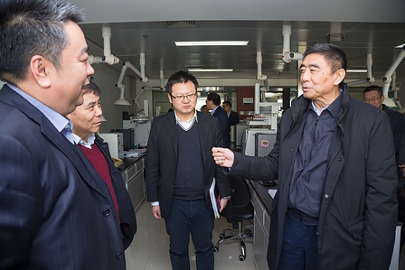 12月21日上午,保利集團黨委書記、董事長徐念沙一行在保利集團黨委常委、副總經理、中輕集團董事長、黨委書記陳鄂生、中輕集團總經理俞海星等陪同下來我院調研指導工作。徐念沙董事長現場查看了我院的食品安全檢驗中心、北京市重點實驗室、科普教育基地和辦公區,實地了解我院項目研發、技術創新、成果轉化、儀器裝備等現狀,并與現場的科研人員進行交流,詳細了解我院科研創新發展情況。