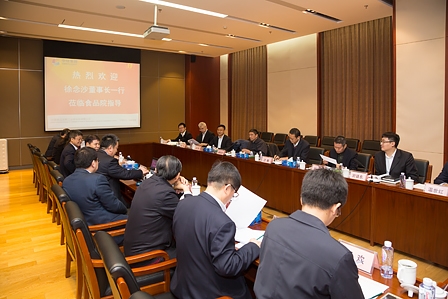 隨后,徐念沙董事長一行觀看了介紹研究院發展情況的的視頻短片,聽取了蔡木易院長所做的專題匯報。蔡木易院長在匯報中首先代表食品院對保利集團領導的到來表示歡迎和感謝,并介紹了研究院組織架構、黨組織情況、業務范圍、運行方式、近年來形成的核心團隊和創新研發平臺優勢以及學習貫徹黨的十九大精神情況。同時就研究院加入保利集團后面臨的定位與任務、核心骨干團隊薪酬體制市場化、分類考核體系以及公司制改制完成后內外部環境變化帶來的影響等問題向徐念沙董事長進行了匯報。