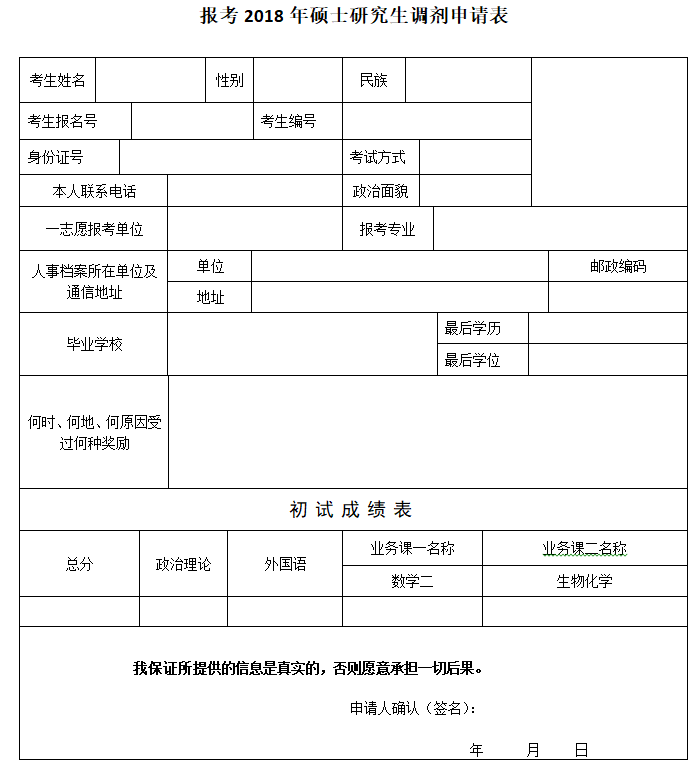 1.欲調(diào)劑我院攻讀研究生的學生,請認真填寫附件:《調(diào)劑申請表》,并將掃描件發(fā)送至郵箱:ffhr@cnif.cn。注意:簽名處須本人親筆填寫。