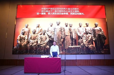 徐念沙從中國革命時期國有企業的歷史貢獻,講到習近平總書記對國有企業改革發展和黨的建設的一系列批示,強調要深刻把握新時代國有企業的戰略定位和歷史使命,保持政治定力,立足新時代,把握新形勢,展現新作為。
