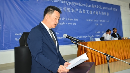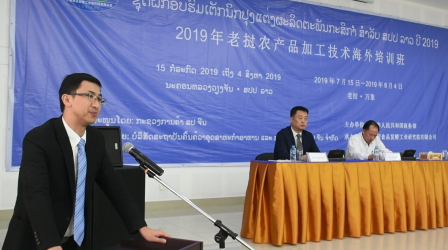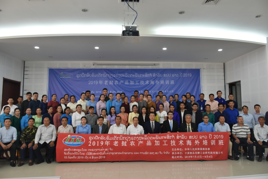 為積極落實國家“一帶一路”倡議,用實際行動踐行習近平總書記提出的“親、誠、惠、容”的周邊外交理念,由中華人民共和國商務部主辦、我院承辦的“2019年援外人力資源開發合作項目”系列培訓班于萬象首秀,“2019年老撾農產品加工技術海外培訓班” 于7月15日在老撾建國陣線培訓中心順利開班,培訓學員近百名。