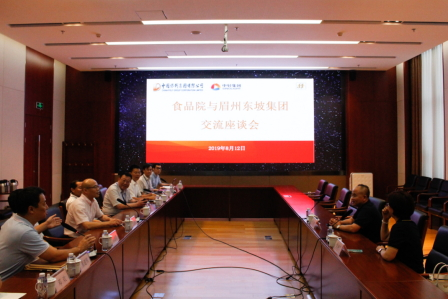 8月12日,中輕集團黨委書記、董事長張萬順,黨委副書記、總經理郭建全,總會計師段趙清與食品院領導一同接待了眉州東坡集團董事長王剛一行來食品院參觀座談。