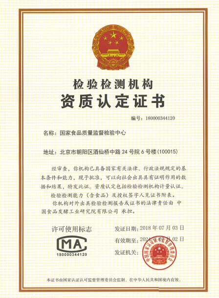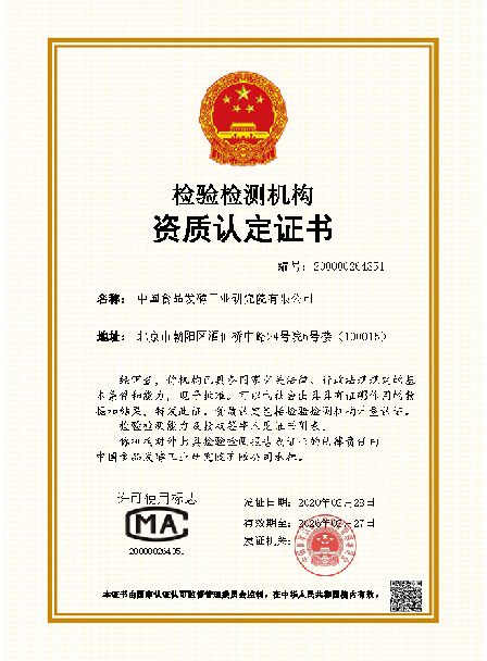 食品院新增檢驗檢測機構資質認定證書,將有效助力國家食品安全監管工作的開展,把短期壓力轉化為轉型升級的動力。