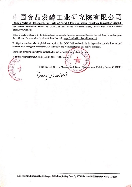 3月26日,食品院向結下深厚友誼的援外培訓各國致以誠摯的慰問,先后向134個國家,6200名學員送去慰問信,對學員朋友們表示誠摯的問候、支持和深深的祝福,并收到援外培訓國家政府、參訓學員及其所在單位的反饋。