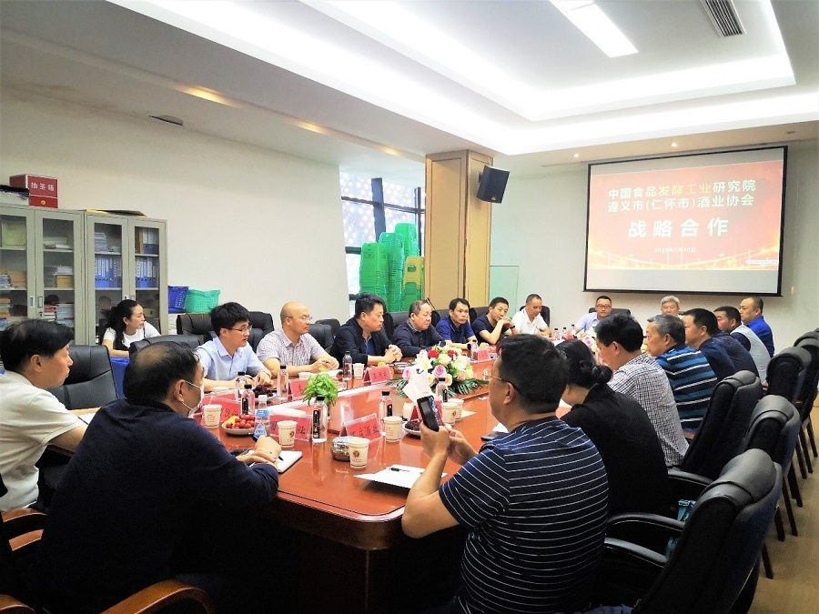 5月30日,中國食品發酵工業研究院有限公司總經理董建輝一行6人到訪中國醬酒核心產區—遵義。食品院與遵義市(仁懷市)酒業協會、當地專家和數十家地方酒類企業代表就提升醬酒品質與品牌形象、提高科研創新能力等話題進行了座談交流,并與遵義市(仁懷市)酒業協會簽署戰略合作協議。