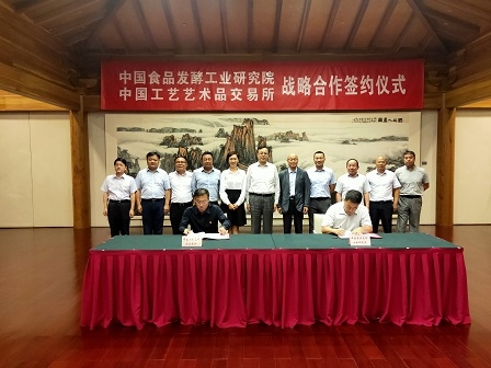 在保利集團、中輕集團、工藝集團有關領導的見證下,食品院總經理董建輝與中國藝交所總經理于峰簽署戰略合作協議。