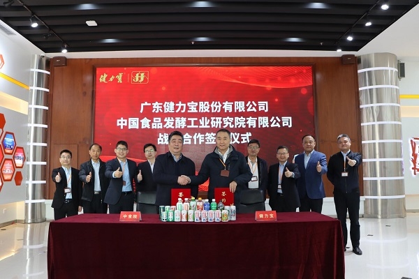 2020年12月2日,中國食品發酵工業研究院有限公司董事長蔡木易一行參訪廣東健力寶集團有限公司,圍繞當前形勢下大健康食品的高質量發展、精品國貨高值化創新等方面與健力寶公司做了深入的探討,并且在健力寶集團總部舉辦了戰略合作簽約儀式。健力寶公司董事長葉紅漢、行銷總部副總裁游志敦和中國食品院副總經理段盛林出席了簽約儀式。