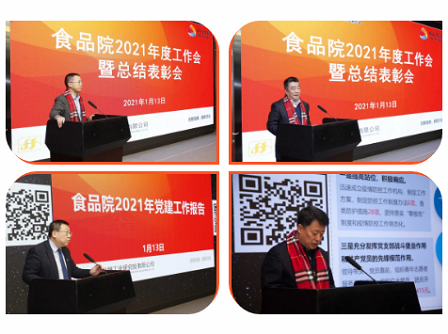 2021年1月13日,食品院隆重召開2021年度工作會暨總結(jié)表彰會。集團總會計師、食品院董事段趙清,集團副總經(jīng)理、食品院董事長蔡木易,皮革院總經(jīng)理、中輕檢董事長、食品院董事段力民,集團公司總經(jīng)理助理、食品院監(jiān)事會主席肖金龍,集團人力資源部、黨委辦公室和董事會辦公室相關(guān)人員,食品院黨政領(lǐng)導班子、全院干部職工和中食公司領(lǐng)導班子共計300余人出席會議。按照疫情防控要求,食品院采取視頻連線的形式,設(shè)立了主會場和11個分會場。