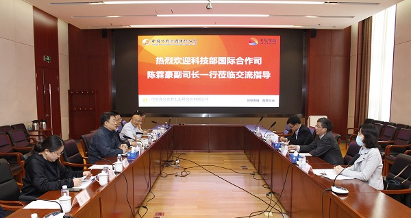 4月16日上午,科技部國際合作司副司長陳霖豪、歐亞處處長周宇、歐亞處調(diào)研員谷敏、段予瑩一行來中國食品發(fā)酵工業(yè)研究院考察指導國際科技合作情況,食品院董建輝總經(jīng)理、副總經(jīng)理魯軍、段盛林、相關(guān)研發(fā)部主任參加了座談。