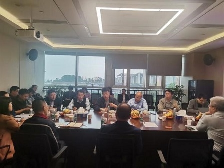 4月14日董建輝一行參觀了瀘州老窖公司的全自動化的生產與包裝車間,與瀘州老窖公司質量管理中心總經理王明等就白酒行業標準法規和風險檢測、2021年度合作以及未來三年戰略合作細則展開詳細的溝通探討。