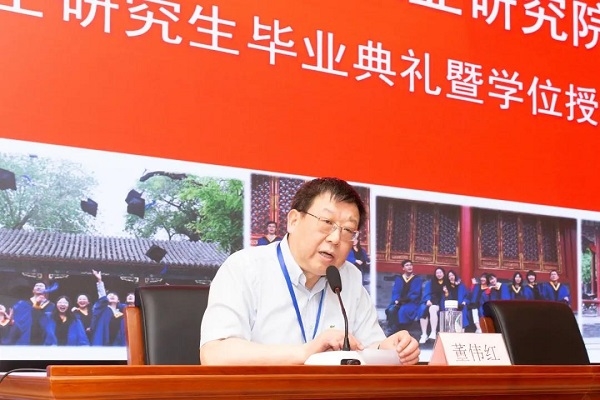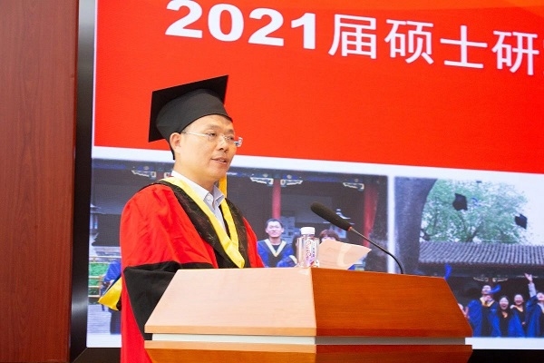 董偉紅書記代表食品院向圓滿完成學(xué)業(yè)的 2021 屆畢業(yè)生表示祝賀,感謝全體導(dǎo)師為研究生的成長(zhǎng)、成才所付出的辛勤工作,同時(shí)激勵(lì)各位畢業(yè)生面向未來(lái)去拼搏,去奮斗,并提出三點(diǎn)期望:一是要有報(bào)效家國(guó)的志向。認(rèn)真學(xué)習(xí)貫徹習(xí)近平新時(shí)代中國(guó)特色社會(huì)主義思想,堅(jiān)定政治立場(chǎng)和政治方向,以報(bào)效祖國(guó)為己任,樹立正確的世界觀、人生觀和價(jià)值觀;二是要有感恩父母的情懷。弘揚(yáng)中華民族優(yōu)秀的傳統(tǒng)文化,在未來(lái)以優(yōu)異業(yè)績(jī)回報(bào)父母的養(yǎng)育之恩;三是要有成就事業(yè)的擔(dān)當(dāng)。走入社會(huì)后,要在工作學(xué)習(xí)方面做一個(gè)對(duì)事業(yè)有追求、對(duì)責(zé)任有擔(dān)當(dāng)?shù)娜耍瑹o(wú)論處于什么崗位、什么環(huán)境,都應(yīng)該直面挑戰(zhàn)、奮勇向前,履職盡責(zé)。他希望同學(xué)們畢業(yè)后在不同的崗位繼續(xù)努力,在未來(lái)取得更好的成績(jī)。