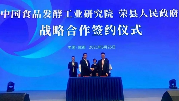 5月25日,2021國際傳統發酵食品產業發展大會在成都召開。會議期間,圍繞創新驅動發展、鄉村振興、健康中國等國家戰略部署,以推動創新資源集聚引領開放協同為目標,中國食品發酵工業研究院與四川榮縣人民政府簽訂了《食品飲料產業戰略合作》框架協議,雙方將合作制定適合榮縣食品飲料產業發展的戰略發展規劃,為榮縣食品飲料產業升級發展提供技術服務與資源支撐。榮縣縣委副書記、縣長鄭小清與食品院魯軍副總經理分別代表雙方簽約,四川省經濟合作局一級巡視員吳燕翔,自貢市人民政府副市長吳進學,食品院總經理董建輝、副總經理宋全厚等領導出席了簽約儀式。