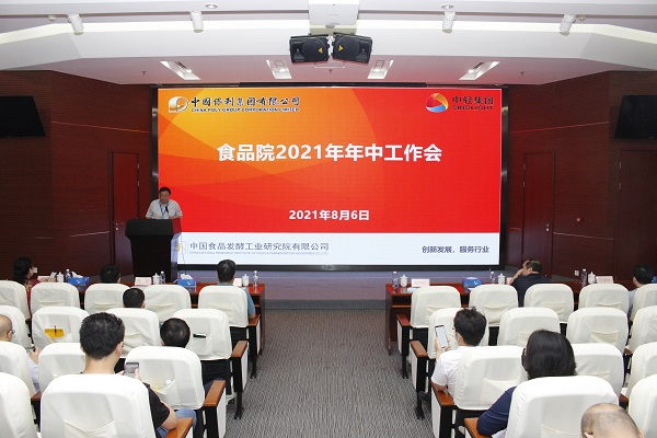 2021年8月6日,中國食品發酵工業研究院有限公司召開2021年度年中工作會議,總結上半年工作,分析當前形勢,研究部署下半年重點任務。會議由黨委書記董偉紅主持,食品院領導班子成員、中心主任以上干部,中食公司領導班子成員參加會議。