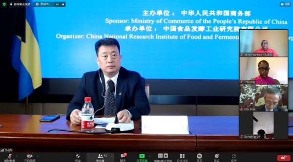 2021年9月6日,由國家商務(wù)部主辦、中國食品發(fā)酵工業(yè)研究院承辦的“巴哈馬農(nóng)副產(chǎn)品生產(chǎn)加工管理研修班”成功舉辦了線上開班儀式。中國駐巴哈馬特命全權(quán)大使戴慶利、巴哈馬農(nóng)業(yè)與海洋資源部常務(wù)秘書(副部級(jí))喬爾·劉易斯、食品院總經(jīng)理董建輝、中國駐巴哈馬經(jīng)濟(jì)商務(wù)參贊樊金科出席了開班儀式,食品院總經(jīng)理助理羅燕琴主持開班儀式。