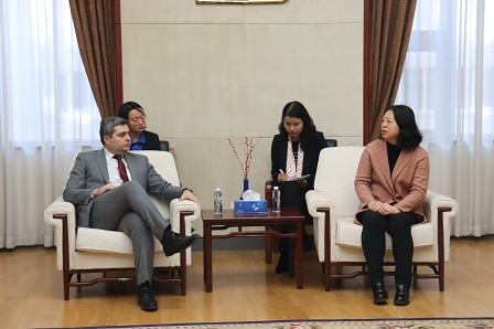 總經理肖丹代表食品院歡迎各位來訪客人并簡要介紹食品院技術背景與資源構成。她表示,食品院作為新中國第一支干紅與第一支干白的締造者,與葡萄酒淵源頗深,致力于格魯吉亞葡萄酒在華推廣的格酒推廣中心已成立十余年,在推廣中心團隊的努力下取得了良好成效。今后,食品院與格方不僅在葡萄酒方面,在其余多方領域都將開展深入合作。