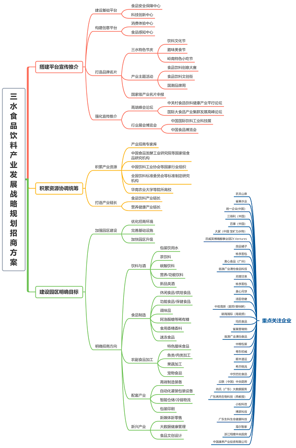 食品院《規(guī)劃》編制小組根據(jù)土地資源和現(xiàn)有空間布局,篩選了大量細分產(chǎn)業(yè)鏈條和大批目標補強企業(yè),形成獨立的招商工作報告,旨在爭取一批投資規(guī)模大、帶動能力強、發(fā)展趨勢好的重大項目,引進一批經(jīng)濟效益好、研發(fā)能力強、占地面積小、延鏈意義突出的新興成長型企業(yè),助力實現(xiàn)三水區(qū)超千億食品飲料產(chǎn)業(yè)集群的戰(zhàn)略目標。