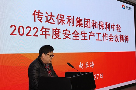 總經理肖丹在總結講話中對各部門在過去一年安全生產工作所取得的階段性成績給予了肯定,就如何深入領會并貫徹落實保利集團和保利中輕2022年安全生產工作會議精神、抓好2022年度各項安全生產工作提出了四點要求: