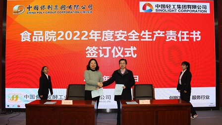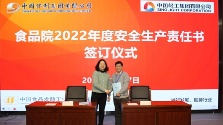 會上,觀看了安全生產警示教育視頻,物業管理部傳達了保利集團和保利中輕安全生產工作會議主要精神,綜合辦公室通報了食品院2022年度安全生產工作重點,副總經理姚粟作了生物安全專題培訓講座,保利中輕總經理助理、食品院黨委副書記、總經理肖丹與各部門和直屬企業簽訂了2022年度安全生產責任書。