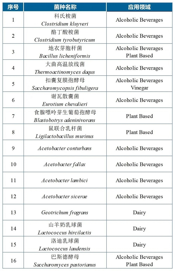 第四版IDF發酵食品用菌種名單共收錄微生物菌種325種,其中細菌230種,真菌95種。較2018年發布的第三版名單,共有新增菌種16種,如下表所示: