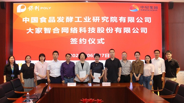 2022年6月17日,保利中輕總經(jīng)理助理、中國食品發(fā)酵工業(yè)研究院有限公司黨委書記、總經(jīng)理肖丹會見了大家智合(北京)網(wǎng)絡(luò)科技股份有限公司創(chuàng)始人兼CEO陳彥一行,陪同參觀了中國食品院各研究中心并進(jìn)行了深入的交流座談,雙方就終端產(chǎn)品推廣合作簽署了戰(zhàn)略合作協(xié)議。