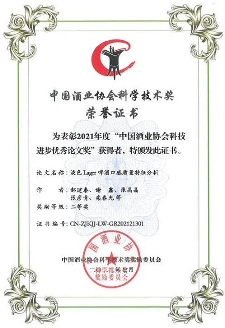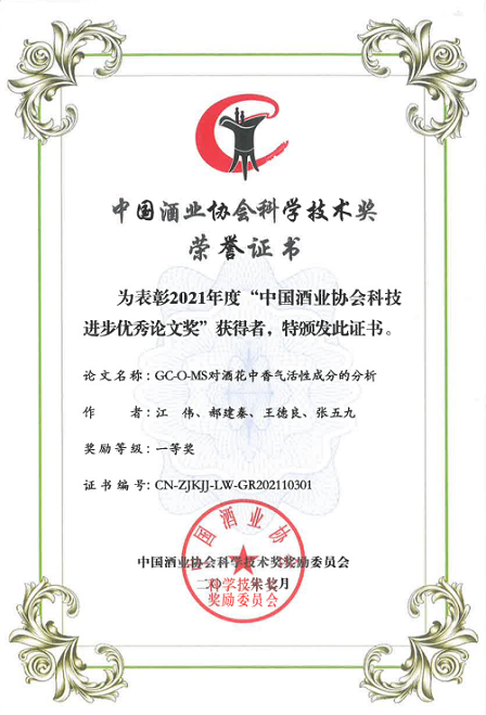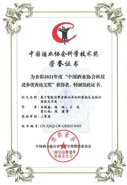 此外,中國食品院4篇科技論文榮獲2021年度中國酒業協會科學技術獎(論文類),其中一等獎1篇,二等獎2篇,三等獎1篇。