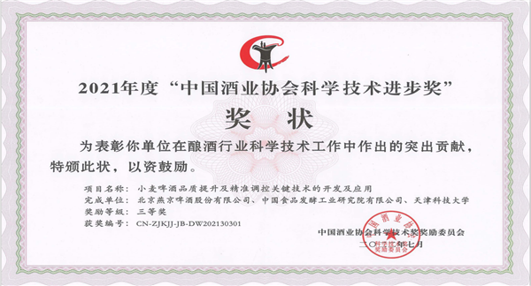 近期,中國酒業協會召開第六屆理事會第四次擴大會議。會上,中國食品發酵工業研究院有限公司聯合百威亞太控股有限公司《啤酒制造業碳中和關鍵技術的研究與應用》項目成果榮獲2021年度中國酒業協會科學技術進步二等獎;中國食品院聯合北京燕京啤酒股份有限公司、天津科技大學《小麥啤酒品質提升及精準調控關鍵技術的開發與應用》項目成果榮獲2021年度中國酒業協會科學技術進步三等獎。