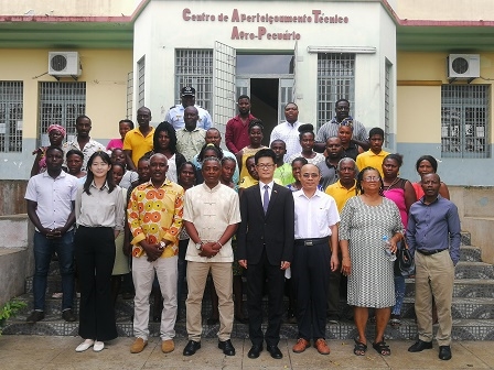 保利中輕總經(jīng)理助理、中國食品院黨委書記、總經(jīng)理肖丹女士,圣多美和普林西比民主共和國(以下簡稱“圣普”)農(nóng)業(yè)、漁業(yè)和農(nóng)村發(fā)展部代部長塞爾索·加里多先生、中國駐圣普大使館臨時代辦胡濱先生、圣普梅佐希大區(qū)主席德賽塔先生、中國援圣普農(nóng)牧業(yè)技術(shù)專家組組長賈金宏先生受邀出席本次開班儀式。來自農(nóng)業(yè)部的47名學(xué)員參加本次開班儀式。
