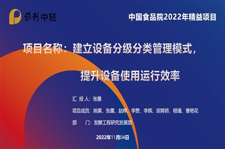2022年是保利中輕精益管理深化年。為深入學習保利集團黨委書記、董事長劉化龍提出的“八維精益”管理理念,積極落實保利中輕2022年推進精益管理工作方案,促進2022年度精益管理工作落實落地,并激發員工參與精益改善活動的熱情,中國食品院聚焦提質增效,近期組織開展以“精益之星樹典范 精益項目促改善”為主題的精益改善系列評選活動,參評項目包括精益之星、精益項目和精益征文。
