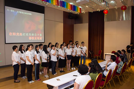 我院八個分工會積極參與、認真組織,參賽隊伍熱情洋溢、演出精彩。《歌唱祖國》、《紅旗飄飄》、《我的中國心》、《同一首歌》和《打靶歸來》等歌曲點燃了現場的氣氛,唱出了大家的心聲。最后,經評委組綜合打分,比賽前三名分別為發酵分工會、綜合分工會和釀酒分工會。